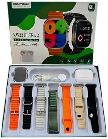 ساعت هوشمند مدل KW22 ULTRA 2صفحه نمایش لمسی پشتیبانی از زبان فارسی قابلیت مکالمه و دریافت اعلان ها کیفیت عالی همراه با ایر پادز سری 2 و هفت بند سلیکونی