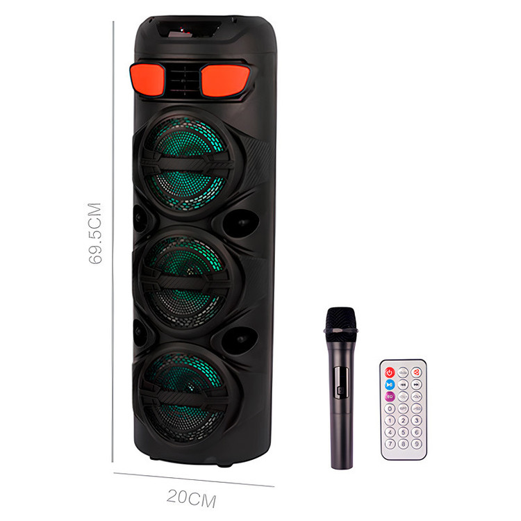 کلیدهای فیزیکی تعبیه شده بر روی بدنه جهت مدیریت موسیقی، MODE، خاموش/ روشن و...، اقلام همراه یک عدد میکروفون بی سیم و ریموت کنترل