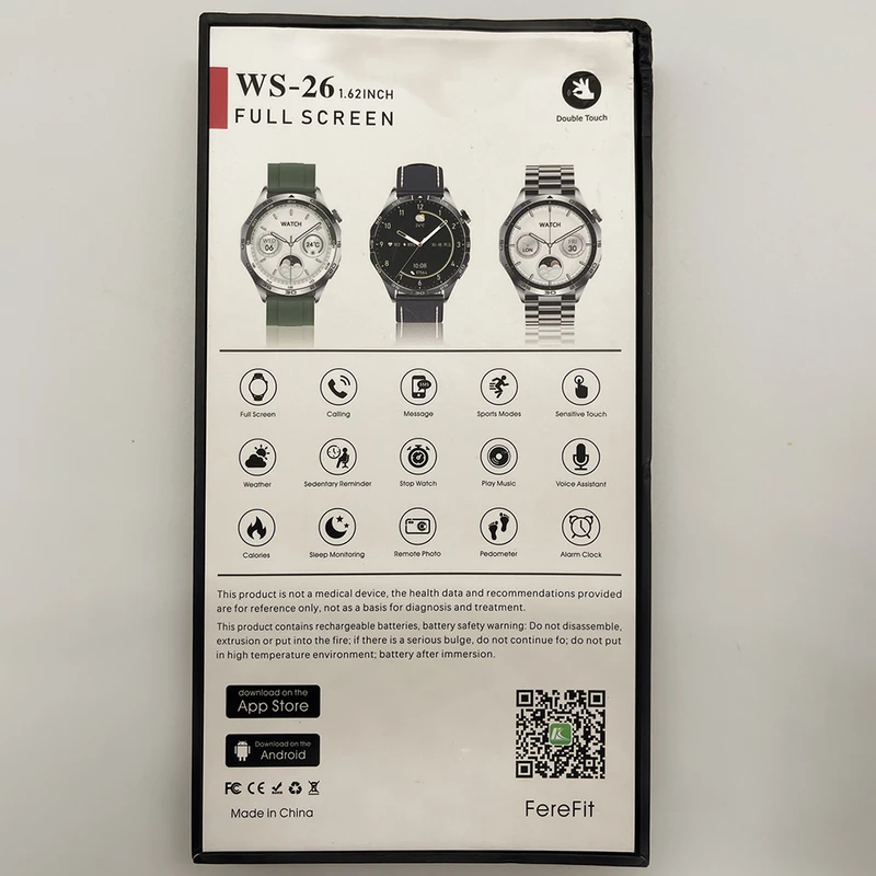 ساعت هوشمند صفحه گرد مدل WS-26 پشتیبانی از فارسی دارای اپ مخصوص قابلیت تماس و پاسخ دارای میکروفون و اسپیکر دارای سه بند درجه یک